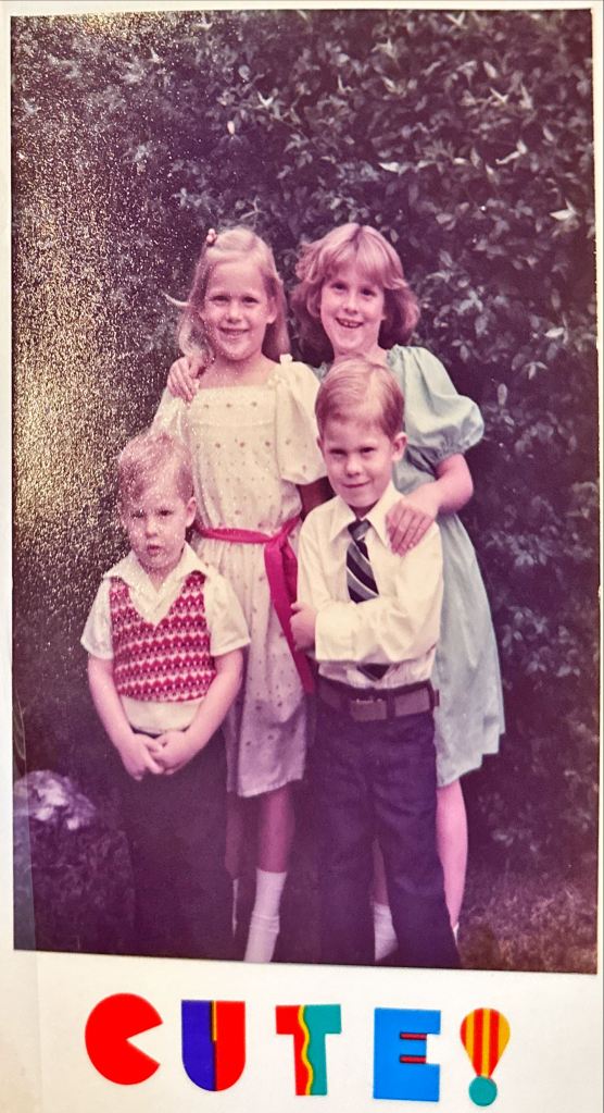Mother had four children at the time. Stefanie* was 9 years old. As the first child in a Mormon family, she was parentified and did not have a childhood. Mother made Stefanie watch us while Mother talked on the phone. Courtney* was 7; I was *6. We were born 18 months apart. Little Murph* was 4 years old. Stefanie would focus on keeping Murph alive while Courtney “watched over” me. Stefanie could fill in a lot of the gaps here.