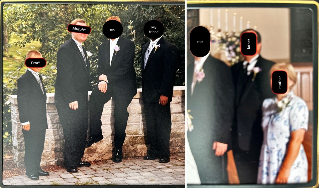 Look at how my father is looking at me. He does not like me. This is 1992ish. After the first Child Protective Services (CPS) investigation, but before the suicide attempts. He hates me because Mother has told him what a ‘piece of shit Joseph* is’ for 7 years. Father just does what Mother tells him to do. Mother told him that I was a seasoned liar when I was five years old. That is why my father’s face looks like that. I’m not censoring it. No one looks the same after 30 years.