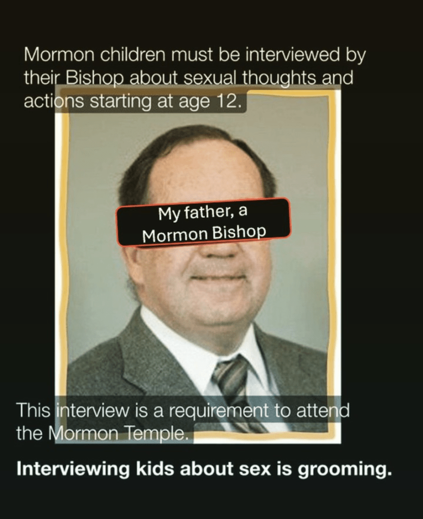 This man, my bio father, colluded with a Mormon police officer to quash a child protective services investigation into my mother for hiding the rapes of two of her children and then beating them into silence for years. Years of daily beatings for trying to speak out about the sexual abuse that happened in her house. She allowed it to happen.