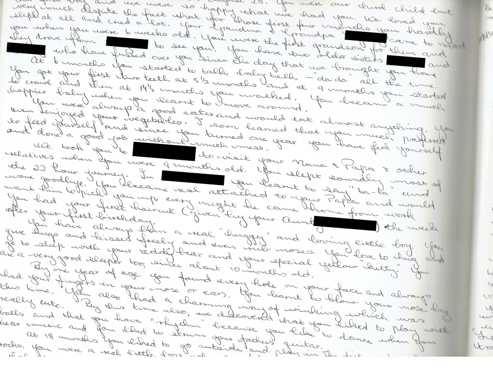 My Church of Jesus Christ of Latter-Day Saints Deseret Baby Book. My birth mother started the Journal portion when I was born.